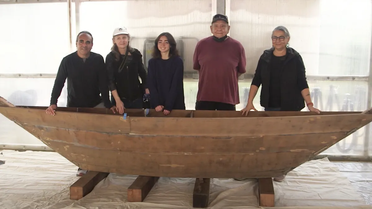 Go behind the scenes as a traditional canoe of the Gabrielino-Tongva peoples, known as a Ti’at, is delivered to NHM. Two years in the making, this miniature version of a plank canoe will receive finishing touches, including an abalone design, before it goes on display permanently in the Becoming Los Angeles exhibition.